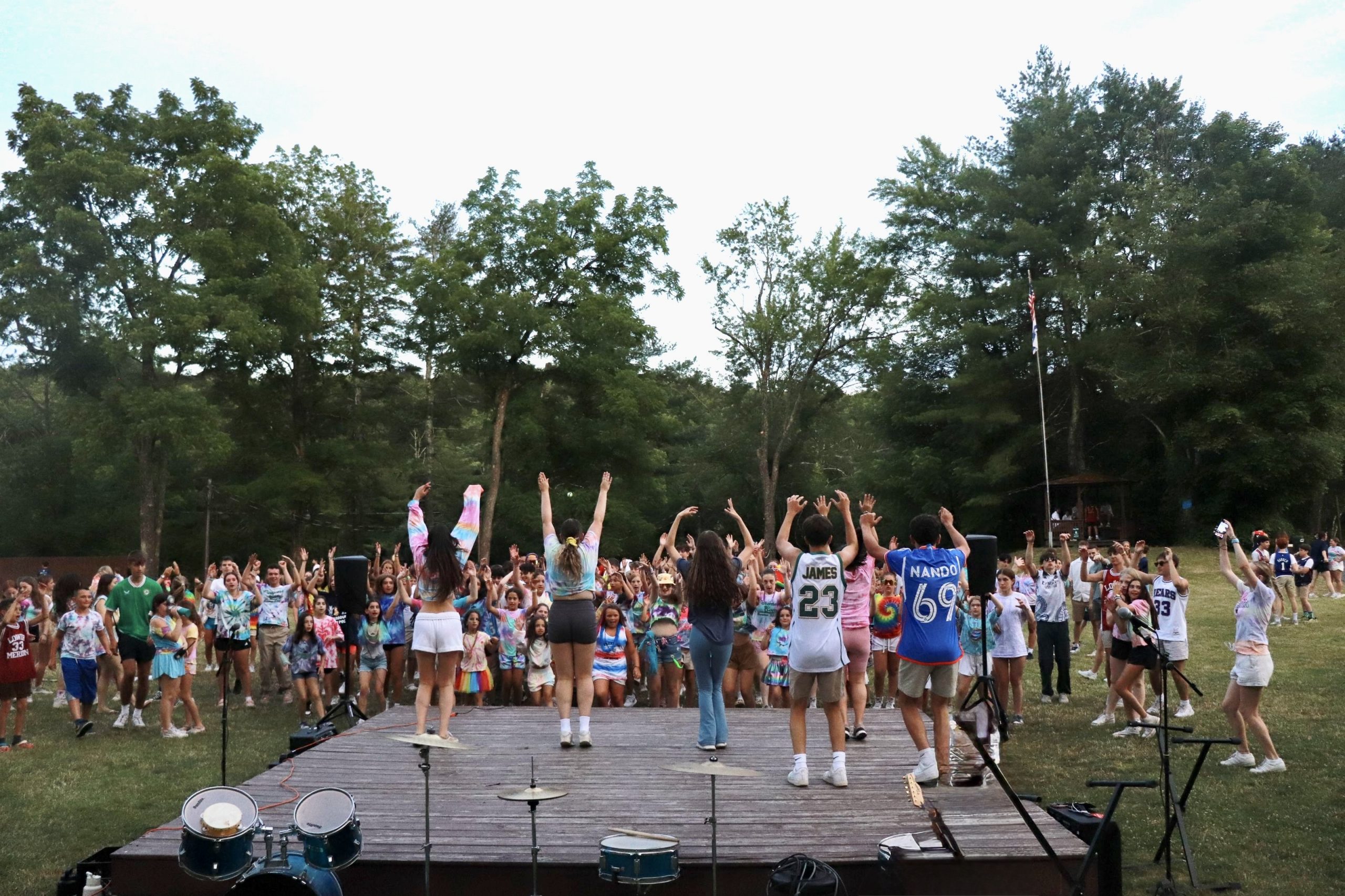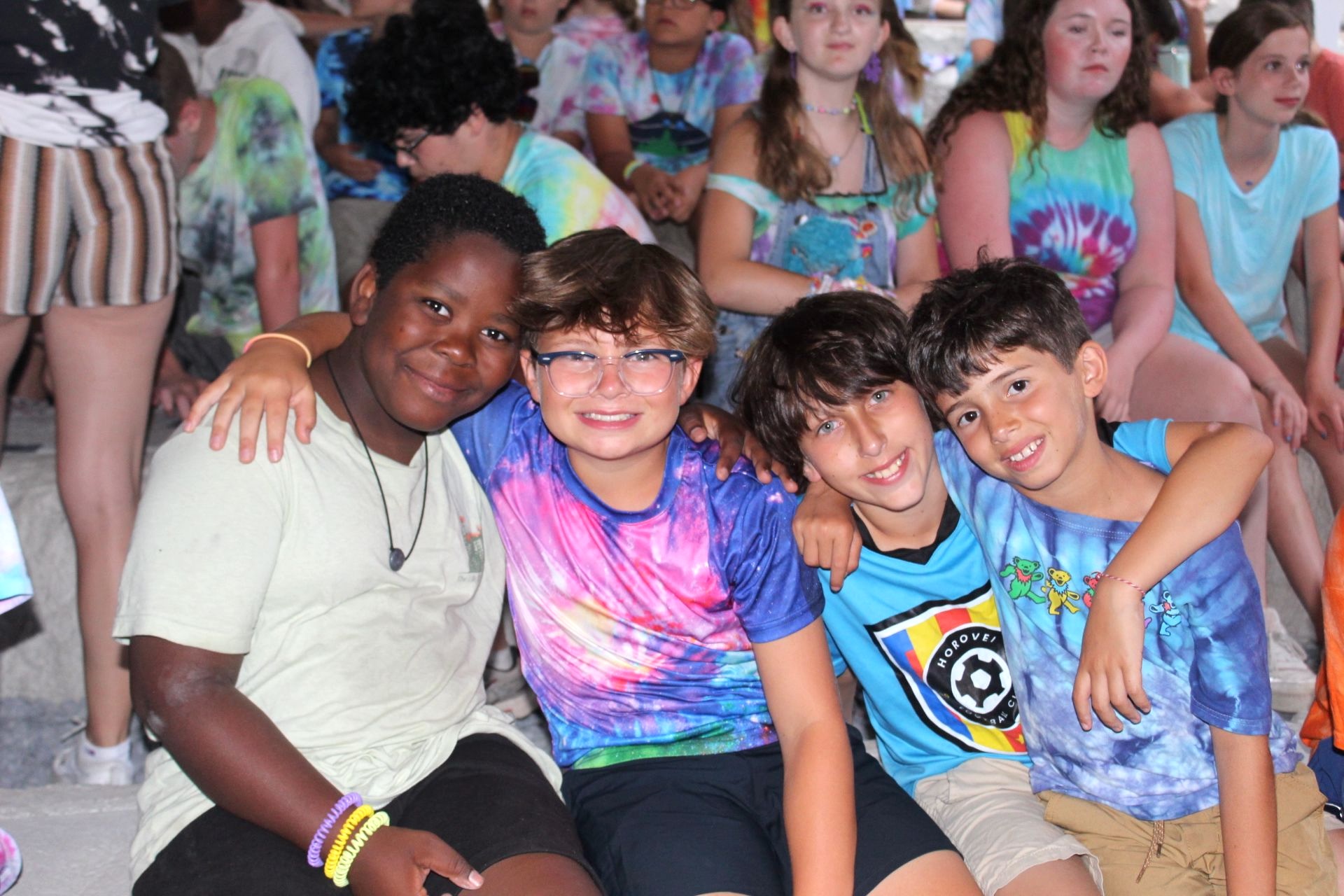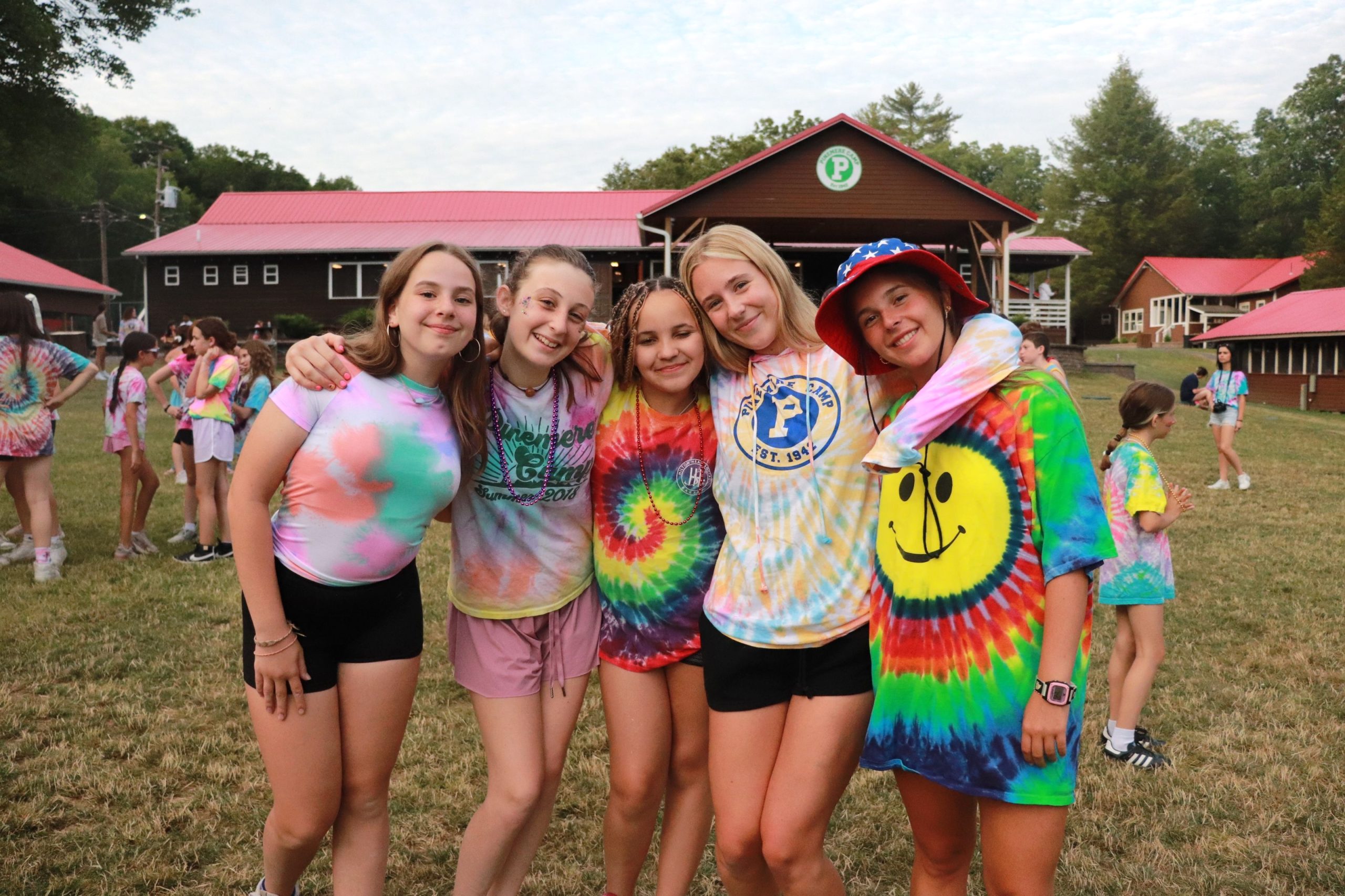 Each Friday evening, we gather in white and khaki at our lakefront chapel for a Shabbat service led by campers and staff. Together, we sing, reflect, and celebrate — creating moments of unity that are uniquely Pinemere. Following services, we enjoy a festive Shabbat meal with camper-made decorations and raising ruach (spirit) as everyone cheers together. After dinner, Shabbat joy continues as campers change into their handmade tie-dye shirts for Tie-Dye, Fri-Dye, a festive evening of singing, Israeli dancing and celebration.